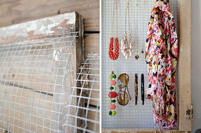 Keep your earrings, sunglasses and scarves in one easy-to- find and awesome-to-look-at place. We dig the shabby chic vibe of this distressed window frame.